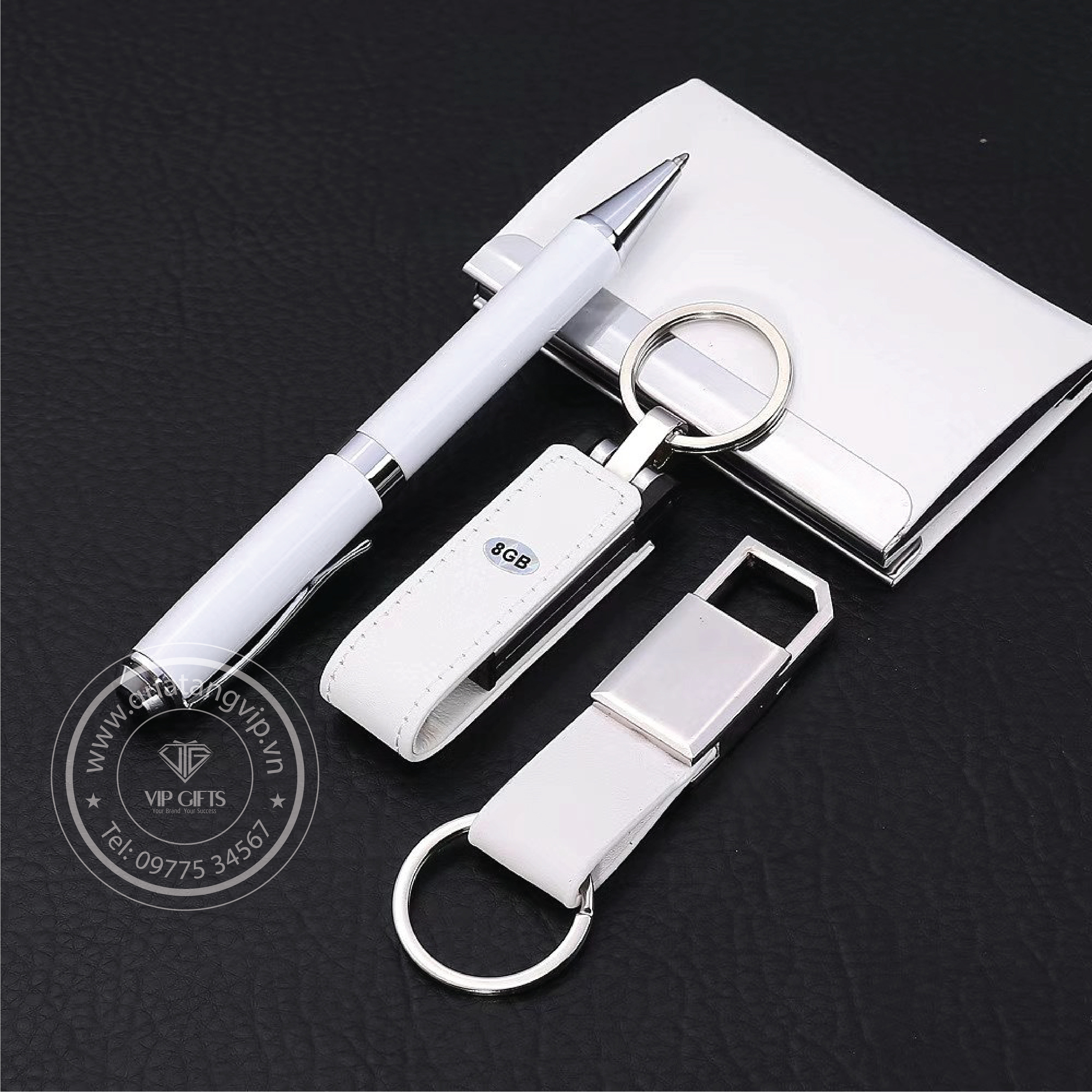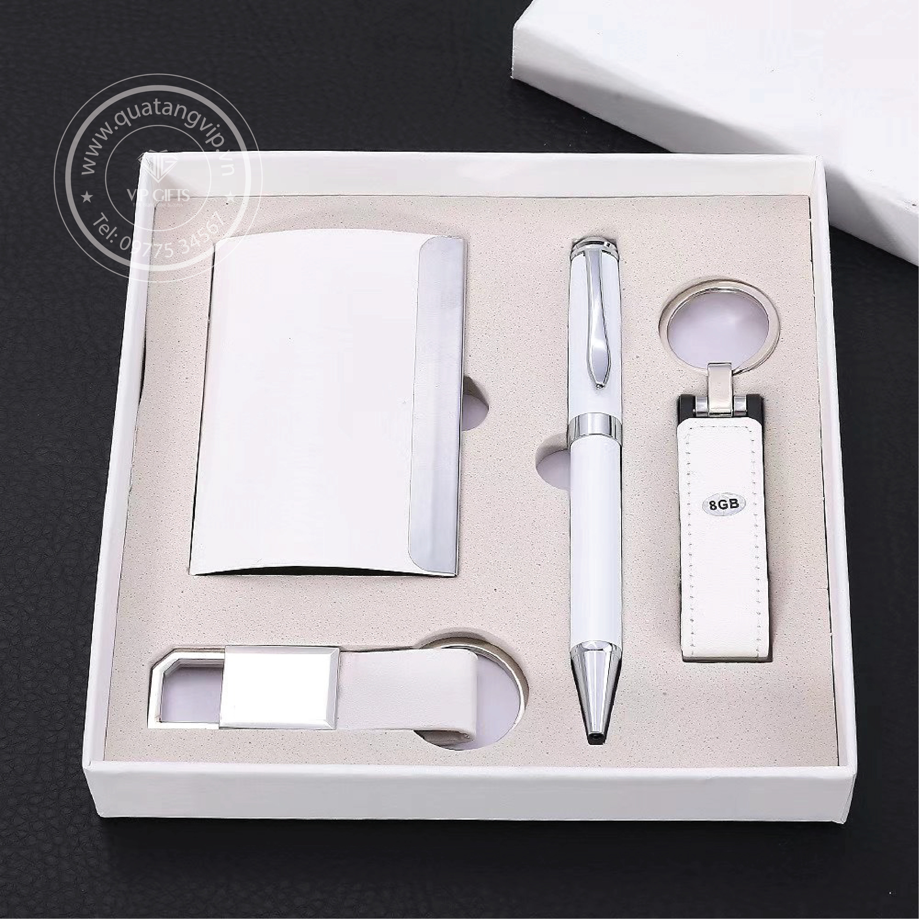 Giftset – bộ quà tặng là sự kết hợp linh hoạt từ các quà tặng khác nhau như Sạc pin dự phòng, Hộp đựng namecard, Sổ bìa da, Móc chìa khóa, USB, Ring đỡ điện thoại, Bút bi , Bút ký, … để tạo nên các bộ quà tặng khác nhau mang đến phong cách riêng, phù hợp với từng đối tượng khách hàng và concept chủ đạo trong mỗi sự kiện.