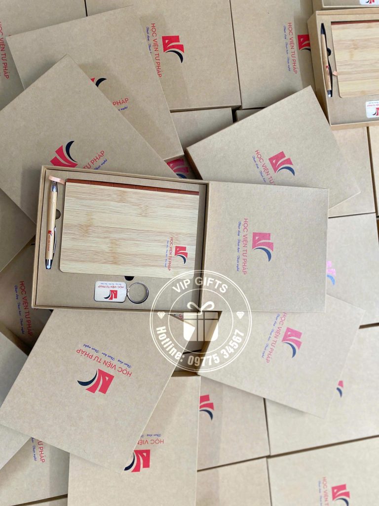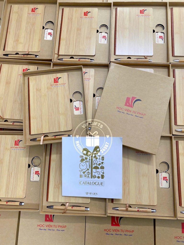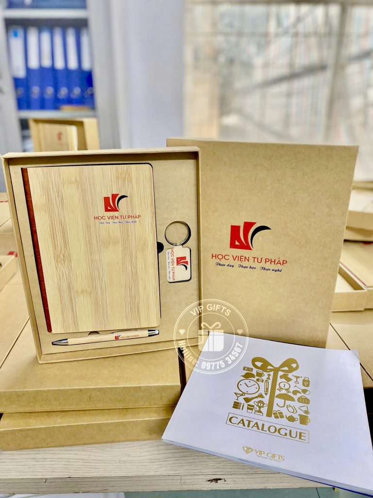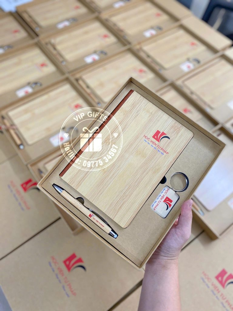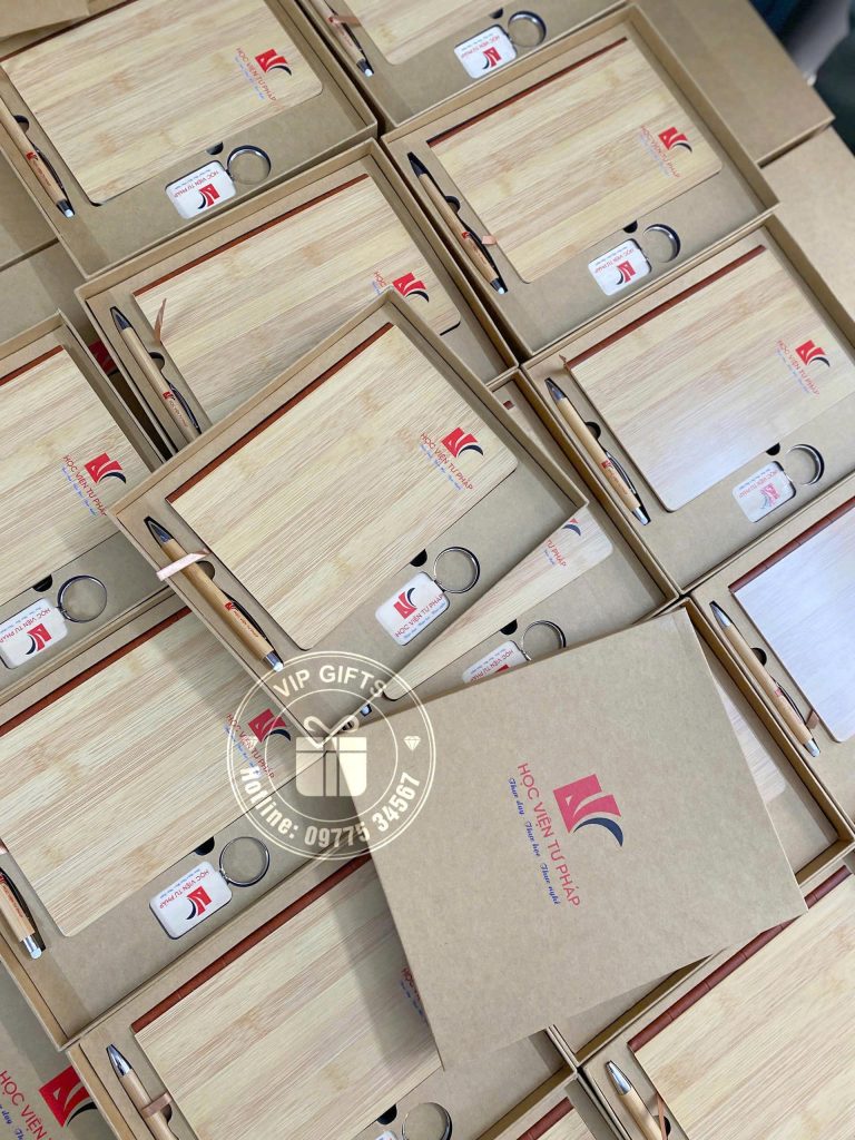 rong xu hướng quà tặng doanh nghiệp hiện đại, các sản phẩm mang tính thân thiện môi trường – thiết kế tinh tế – cá nhân hóa thương hiệu ngày càng được ưa chuộng. Bộ giftset sổ tay gỗ cao cấp Học Viện Tư Pháp do Quà Tặng VIP sản xuất là lựa chọn hoàn hảo dành cho các đơn vị giáo dục, tổ chức và doanh nghiệp.
