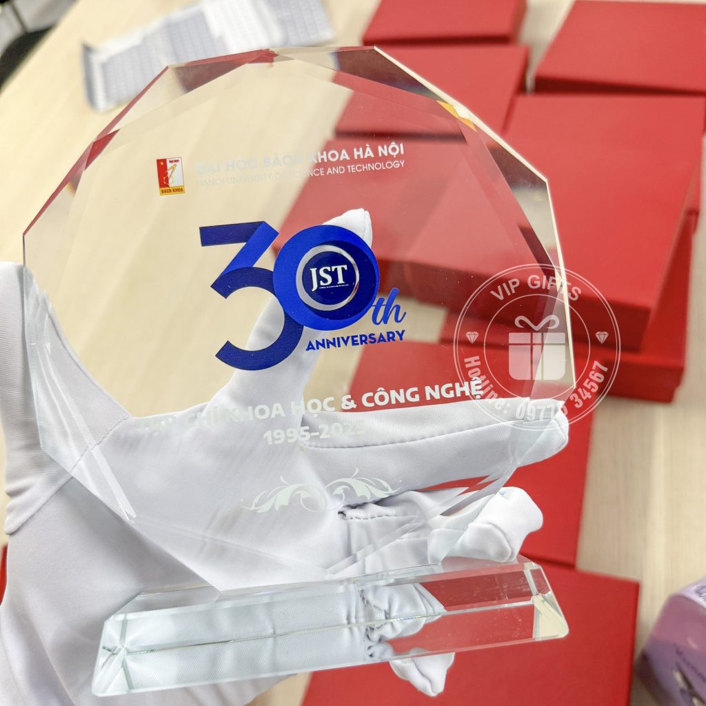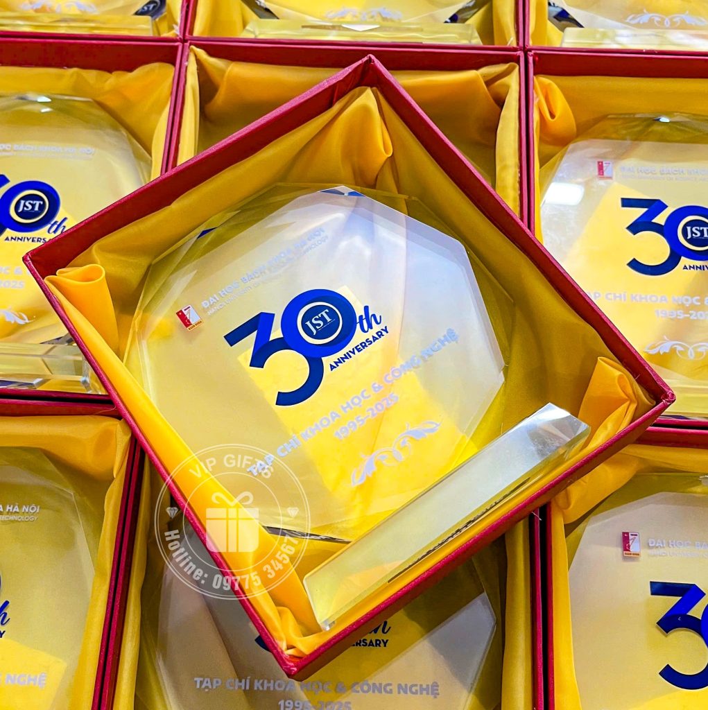 VIP GIFTS hân hạnh là đơn vị thực hiện mẫu cúp pha lê cao cấp dành tặng cho chương trình kỷ niệm 30 năm thành lập Tạp chí Khoa học & Công nghệ (1995–2025) thuộc Đại học Bách Khoa Hà Nội – một biểu tượng của tri thức, sáng tạo và uy tín học thuật.