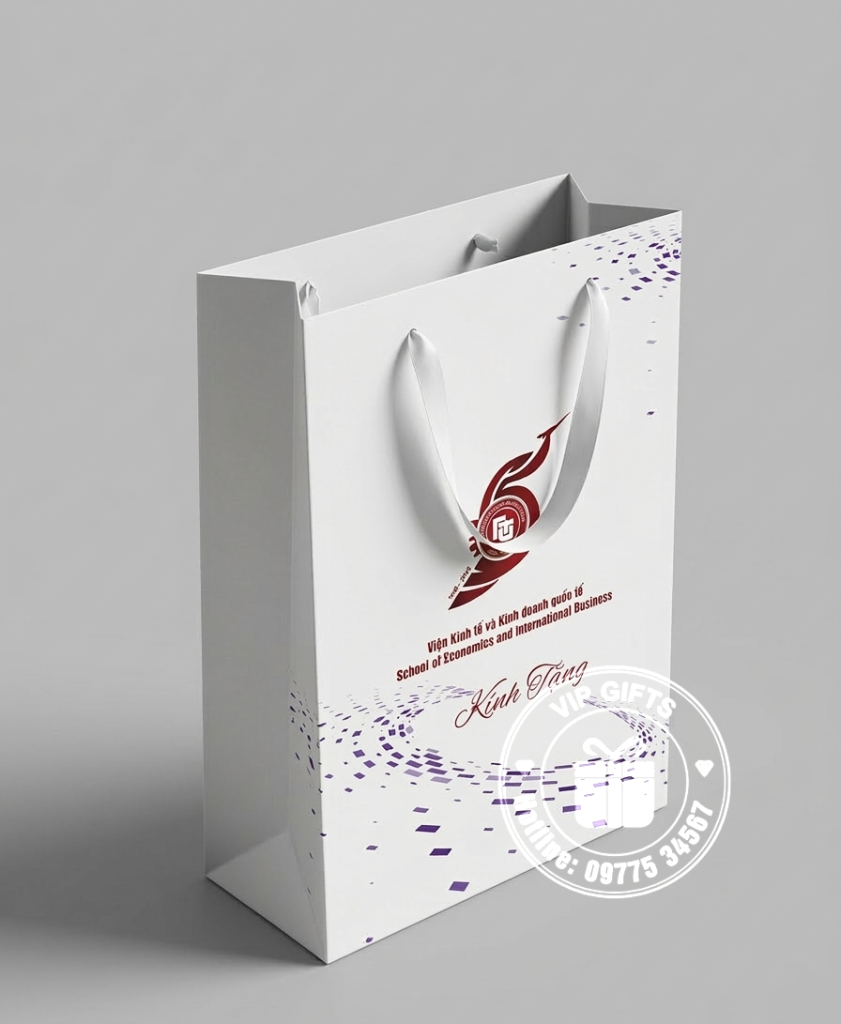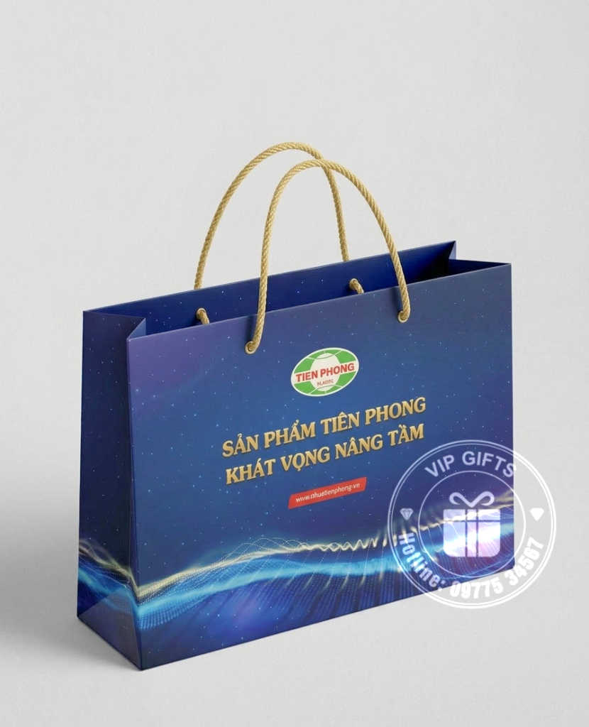 Tại Quà Tặng VIP, chúng tôi cung cấp dịch vụ thiết kế và sản xuất túi giấy đựng quà in logo theo yêu cầu, phù hợp cho nhiều mục đích sử dụng như hội nghị, lễ kỷ niệm, sự kiện, quà tặng đối tác và khách hàng.