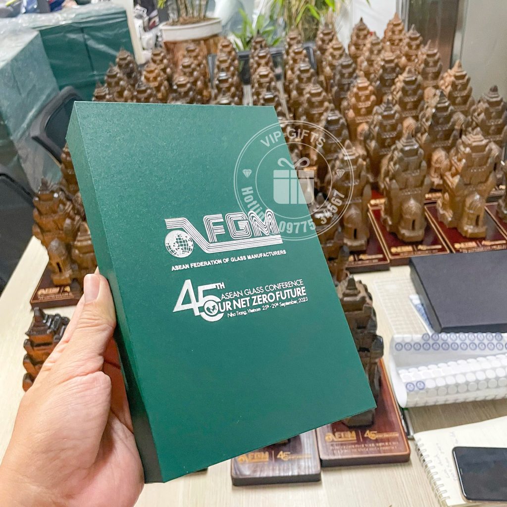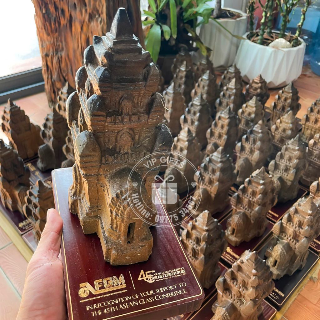 Tượng tháp Chăm là biểu tượng văn hoá đặc trưng của miền Trung Việt Nam, được chế tác tinh xảo bằng chất liệu gốm thủ công truyền thống. Sản phẩm này được lựa chọn làm quà tặng lưu niệm tại Hội nghị Thủy tinh ASEAN lần thứ 45 (ASEAN Glass Conference) – như một lời tri ân sâu sắc và sự ghi nhận cho sự đóng góp của các đơn vị tham dự.