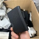 - Hộp quà tặng màu đen cứng cáp, in logo bạc nổi bật.